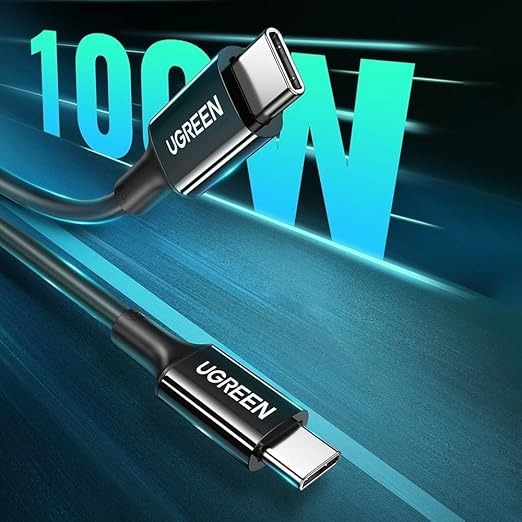 Cabo Turbo PD Ugreen Duplo USB-C de 100W, ideal para carregar smartphones e tablets enquanto transfere dados simultaneamente. Um acessório prático que oferece eficiência tanto no trabalho quanto no lazer.Características principais:Carregamento rápido: Suporta Power Delivery e Quick Charge 3.0/4.0, com capacidade de até 100W e intensidade de 5A.Transferência de dados eficiente: Velocidade de até 480 Mbps, permitindo transferir 1 GB em apenas 30 segundos.Chip de proteção E-Marker: Garante segurança e proteção contra danos durante o uso.Praticidade: Possibilita o carregamento e a transferência de dados ao mesmo tempo, eliminando a necessidade de acessórios separados.Dispositivos compatíveis:Smartphones e tablets com conexão USB-C que suportam Power Delivery e Quick Charge.