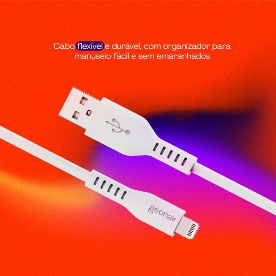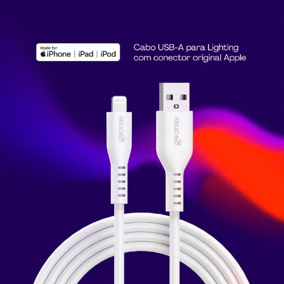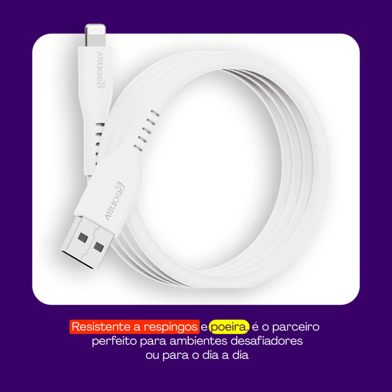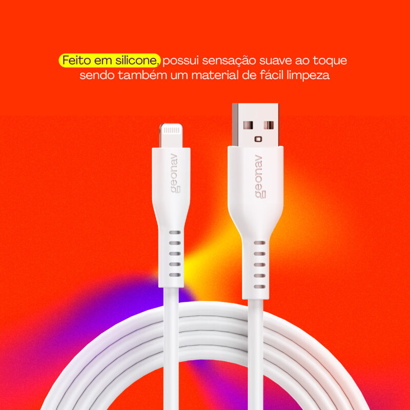CABO GEONAV USB-A PARA LIGHTNING, EM SILICONE, NA COR BRANCO, 1,5 METROS, ESLISWT