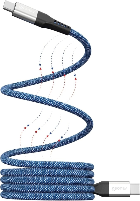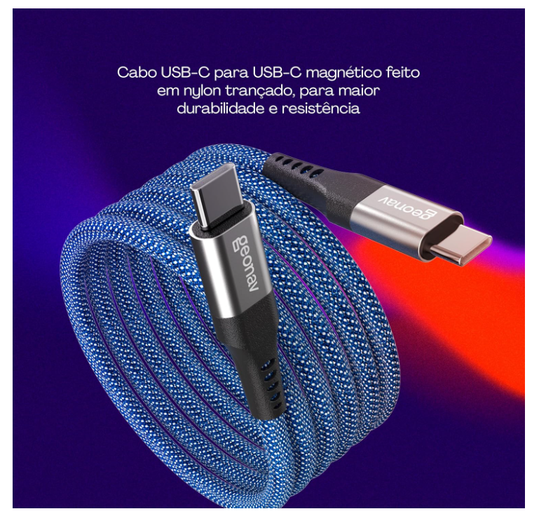CABO GEONAV USB-C PARA USB-C, NYLON TRANÇADO, CORPO MAGNÉTICO, AZUL C/ BRANCO, 1,2M, UCC09MAG
