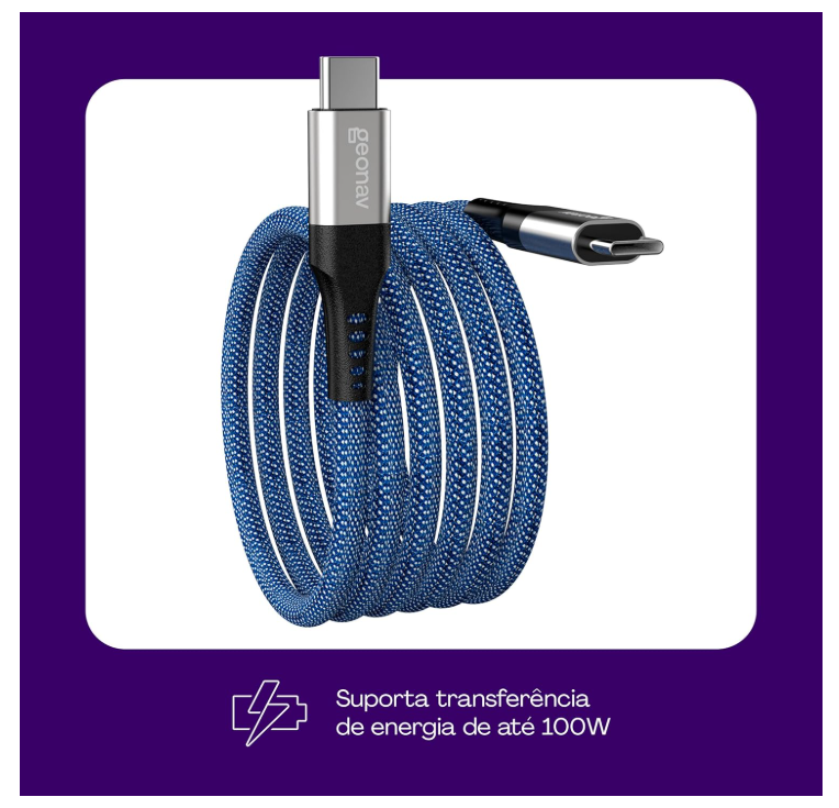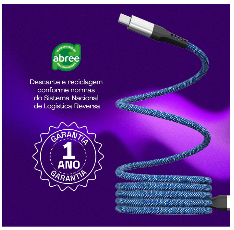 • ORGANIZAÇÃO: Organização sem esforço. O Cabo possui revestimento interno com ímã, fazendo com que possa ser facilmente enrolado e se mantenha organizados em que seja preciso dobrar as pontas do cabo• POTÊNCIA: Suporta transferência rápida de energia de até 100W, compatível com a tecnologia Power Delivery e permitindo carregamento rápido do dispositivo conectado• RESISTÊNCIA: Material de alta resistência (Nylon Trançado) permite maior durabilidade do produto e evita que o cabo seja danificado; Maior dissipação de calor (Corpo de alumínio anodizado).• COMPATIBILIDADE: esse cabo é compatível com diversos dispositivos (iPhone, iPad, AirPods*). Basta ser compatível com a conexão USB-CEspecificações• Extensão do cabo: 1,2 metros• Modelo: UCC09MAG• Voltagem: 15v• Cor: azul e branco• Garantia: 12 meses• Dimensões do produto com embalagem (axlxp): 11,5x2,7x6,8 mm• Peso do produto sem embalagem: 0,05 kg• Peso do produto com embalagem: 0,08 kgi• tens inclusos: 01 cabos usb-c para usb-c