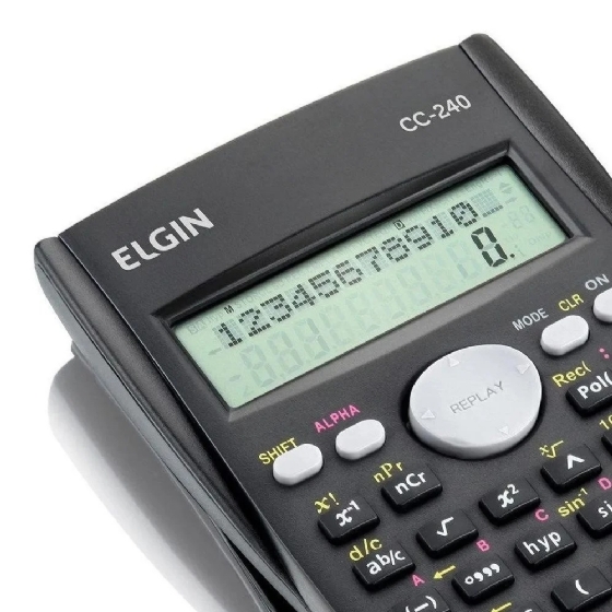 Descrição do produtoA Elgin dispõe das Calculadoras Científicas modelos CC56, SC183 e CC240. Com displays de 10 e 12 dígitos em duas linhas para visualização de Cálculos e Fórmulas, Especialmente desenvolvidas para que estudantes e profissionais façam cálculos mais complexos de forma rápida e precisa, Com modelos de até 240 funções, possuem tampa protetora de encaixe, utilizam pilhas do tipo AAA ou baterias e você pode contar com o suporte, tecnologia e garantia que só a Elgin oferece, Verifique as características disponíveis para cada modelo,.Informações TécnicasCaracterísticas:- Marca: ELGINEspecificações Técnica:- Visualização dos Cálculos,- Cálculos Fatoriais,- Cálculos Estatísticos,- Logaritmo,- Conversões Trigonométricas,- 9 Variáveis,- Cálculos de Frações,- Combinação e Permutação,- Dot Matrix + Numéricos,- Possui tampa protetora de encaixe,- Garantia: 180 DiasConteúdo da Embalagem- Calculadora Cientifica 240 Funções Cc240 Preta Garantia do Fornecedor3 MesesPeso:150 gramas (bruto com embalagem)