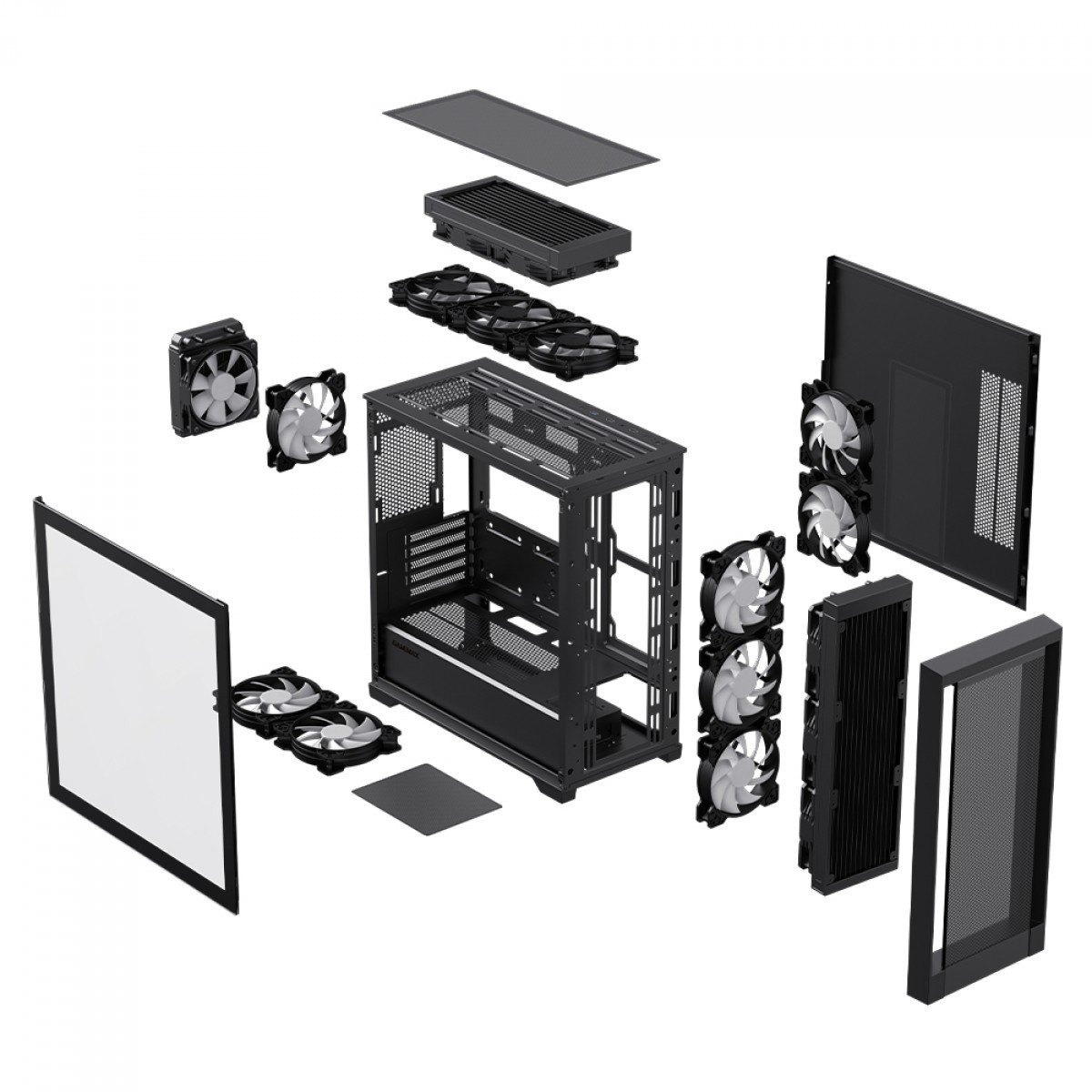 Gabinete Gamer Gamemax Defender - Mini Tower Lateral VidroGabinete para PC GameMax Defender MB Mesh Micro-ATX, contém malha mesh totalmente metálica no painel frontal para um fluxo de ar máximo.• Contém painel de vidro temperado e possui suporte para Water Cooler de 360mm na parte superior.• Possui um desempenho de resfriamento extremo auxiliando a manter as temperaturas sob controle mesmo durante uso mais exigente.• Painel frontal atraente: o painel frontal equilibra funcionalidade e estética. Esta malha consiste em orifícios de malha de 1mm de diâmetro espaçados a 2mm de distância, fornecendo uma taxa de área aberta de 48,3% que permite maior fluxo de ar e evita com eficiência que poeira entre no PC.Marca:GamemaxModelo:DEFENDER MB BLACK Fator de forma:M-ATXChassis:SPCC: 0,6 mmSuporte placa mãe:M-ATX(200mm) e ITXPainel frontal:ABS,MalhaPainel superior:capa de metalPainel lateral:Esquerdo: Vidro temperadoBaias:2x 3,5" (HDD)3x 2,5" (SSD)E/S:Botões 3x Porta(s) USB2.0 2xPorta(s) USB3.0 1x Suporte de áudio 1xSuporte para fans:Frente: 3x 120mm Lateral: 2x 120mm Traseira: 1x 120mm Superior: 3x 120mm Inferior: 2x 120mmSuporte Water Cooler:Frente: 120 mm, 140 mm, 240 mm, 280 mm, 360 mmPrincipal: 120 mm, 140 mm, 240 mm, 280 mm, 360 mmTraseira: 120mm Capa M/B: 120, 240mm Filtro de poeira:Painel inferior, lateral direito e tampa superior com filtro de poeiraSlots:5x Dimensões:(C)415*(L)210*(A)435mmComprimento máximo VGA:Até 410 mm (tampa frontal sem ventoinha)Altura do cooler CPU:165 mmComprimento do SPS:até 265 mm (tampa frontal sem refrigeração a água)Profundidade de gerenciamento de cabos:25mm