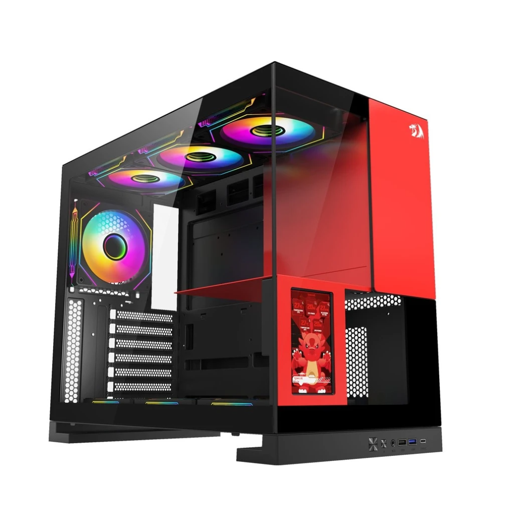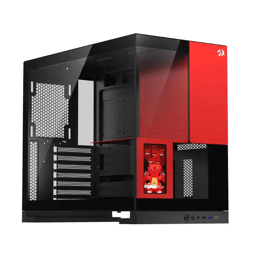 - Tela LCD integrada no painel frontal para monitoramento em tempo real dos componentes internos