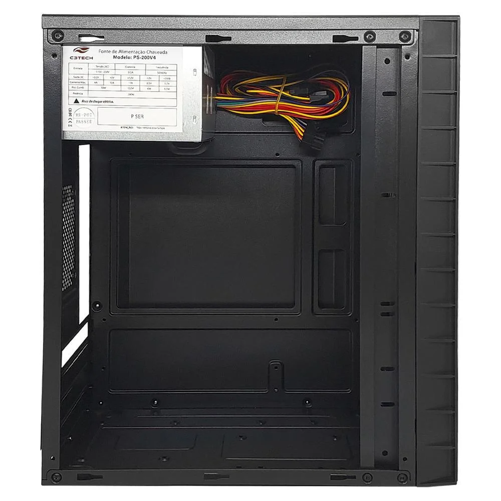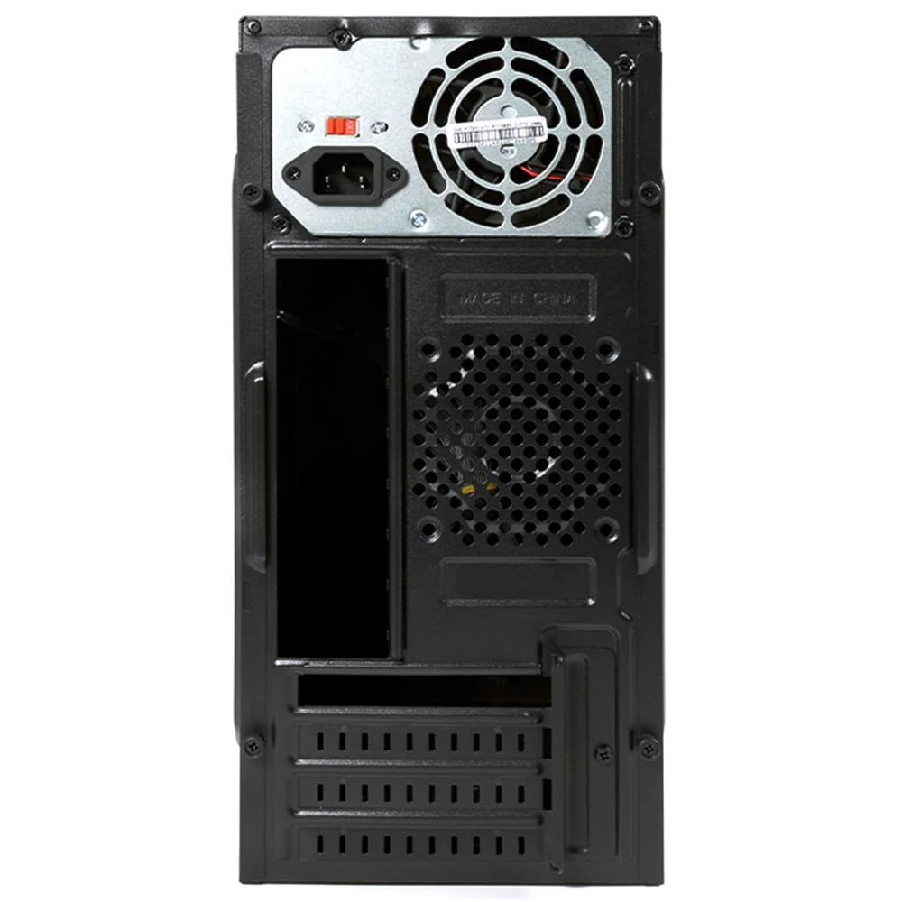 Características Gerais* Gabinete Torre Micro ATX* Com fonte 200W* Tamanho 2 Baias* Suporta placas mãe Micro ATX* Suporte a SSD 2,5* 2 portas USB 2.0 frontais* Entrada para microfone e saída para fone de ouvido (Padrão P2 3,5mm)* Áudio AC97* Organizador de Cabos* Tintura externa e interna antiestática e anticorrosivaEspecificações* Espessura da chapa: 0,35mm SPCC* Tintura externa e interna antiestática e anticorrosiva* Quantidade de baias 3,5: 1 Internas* Quantidade de baias 2,5 e SSD: 2 Internas* 4 slots PCI* Ventilação Frontal: compatível com Cooler Fan 12cm (não acompanha cooler)* Ventilação Traseira: compatível com Cooler Fan 8cm (não acompanha cooler)* Ventilação Lateral: compatível com Cooler Fan 12cm (não acompanha cooler)* Compatível com placa de vídeo até 20cm* Compatível com CPU Cooler até 14cmAltura da embalagem: 0 CMLargura embalagem: 0 CMComprimento embalagem: 0 CMPeso embalagem: 0 gPart Number/SKU: MT-32BKEAN do produto: 7908639900292