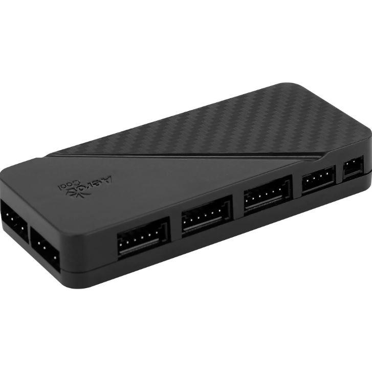 NÃO ACOMPANHA FANSModelo: H66FO Hub Controlador de Fan Aerocool H66F é um modelo que conta com funções de controle PWM que permite conectar até seis ventiladores RGB endereçáveis de 6 pinos e até dois acessórios RGB endereçáveis com conector 5V ARGB. O conector da placa-mãe suporta placas-mãe RGB endereçáveis(Asus Aura Sync, MSI Mystic Light Sync e Gigabyte RGB Fusion).- Controle os efeitos de iluminação usando o controle remoto ou conectando o hub a qualquer botão em sua capa- Acesse 16,8 milhões de cores e mais efeitos de iluminação usando placa-mãe RGB endereçável compatível- As funções de controle PWM permitem que você controle automaticamente ou manualmente a velocidade do ventilador usando placas-mãe compatíveisCor: PretoPortas: para fans: 6Porta para conector 5V ARGB: 2Informação adicional:Hub e controle remoto:• Modelo: RF sem fio• Conector: SATA• Tensão nominal: 12V / 5V• Corrente nominal: 3 A• Frequência: 433,92 MHZ• Alcance de recepção: 10mAcessórios:• Tira de velcro x 1• parafuso x 12• Zíper preto x 2Garantia: 06 meses