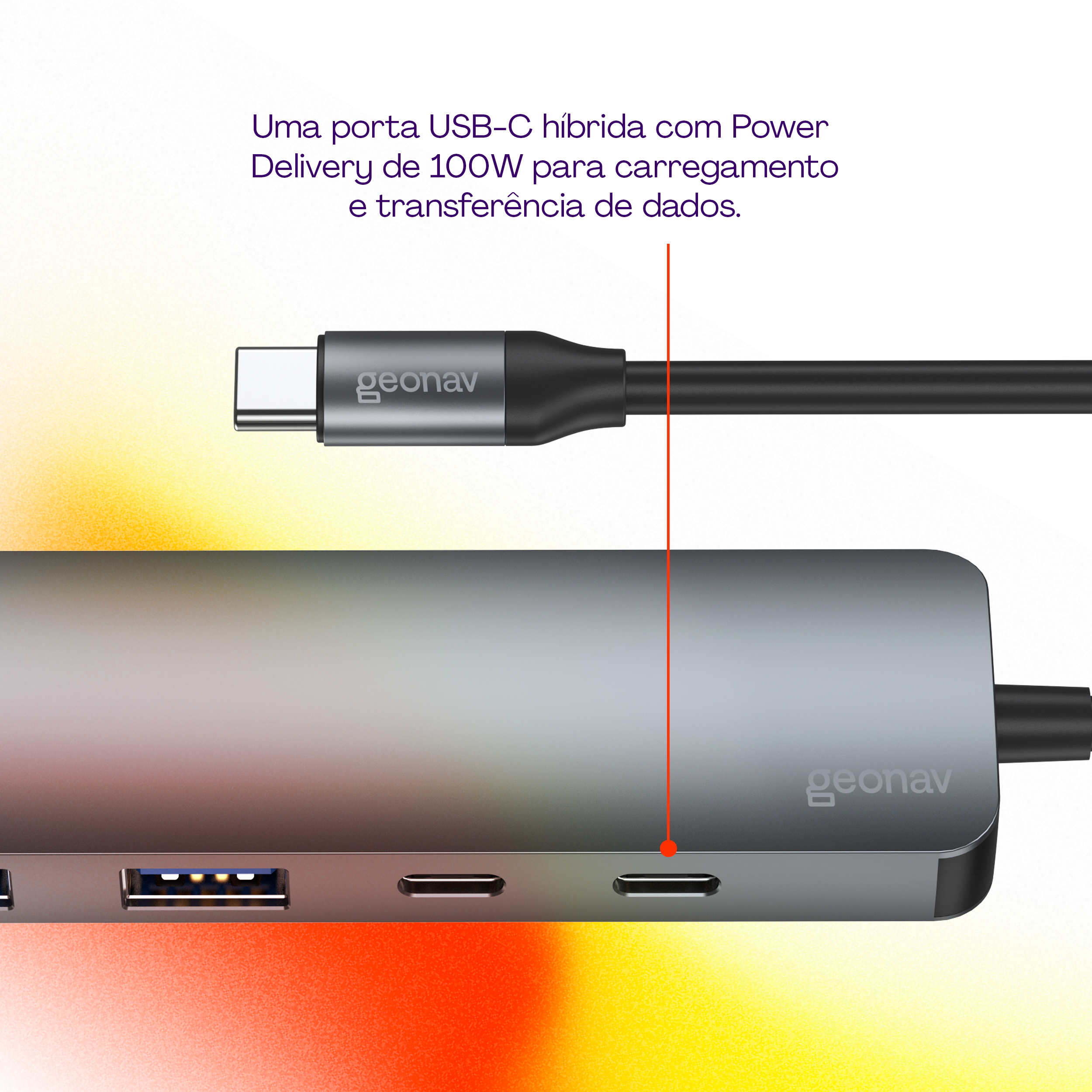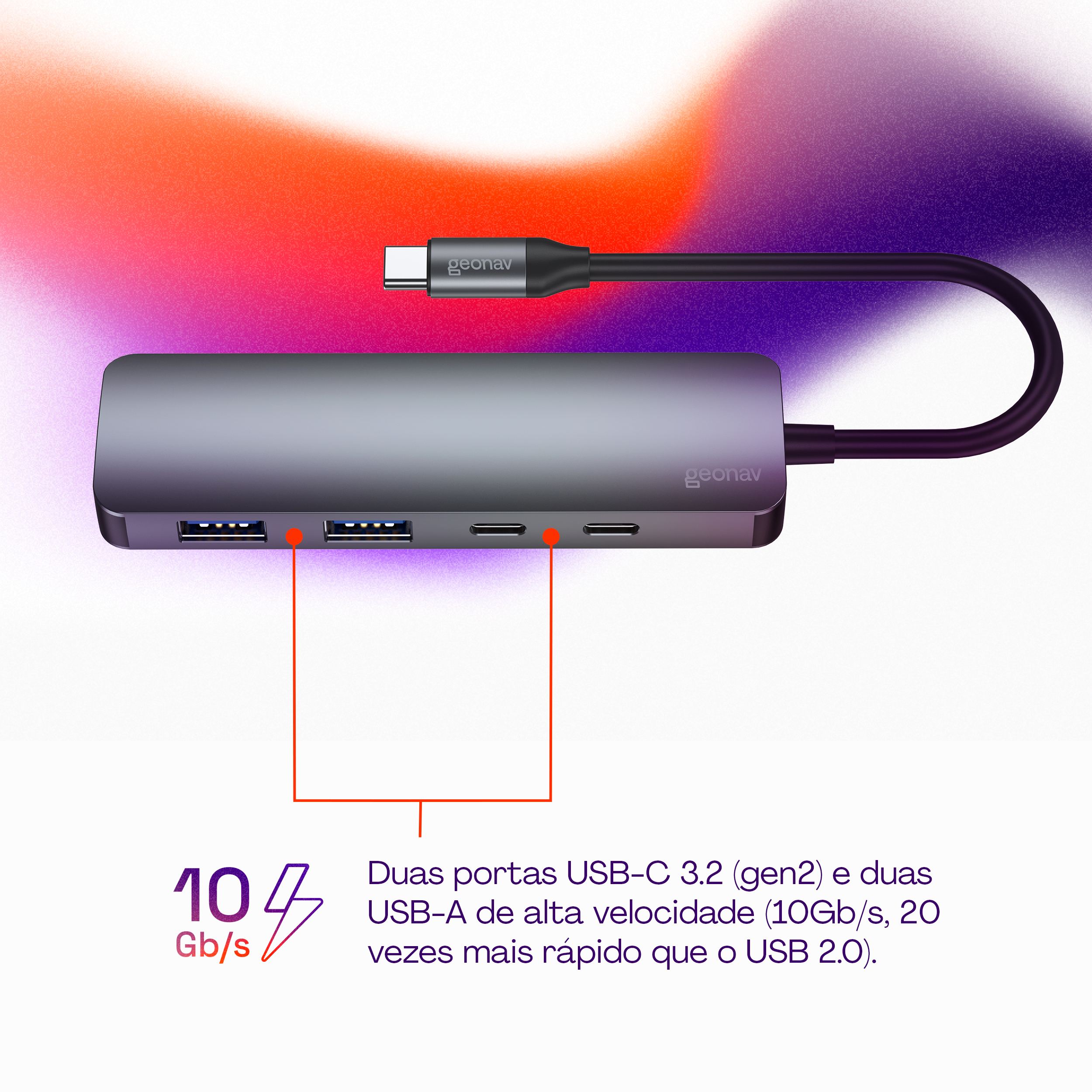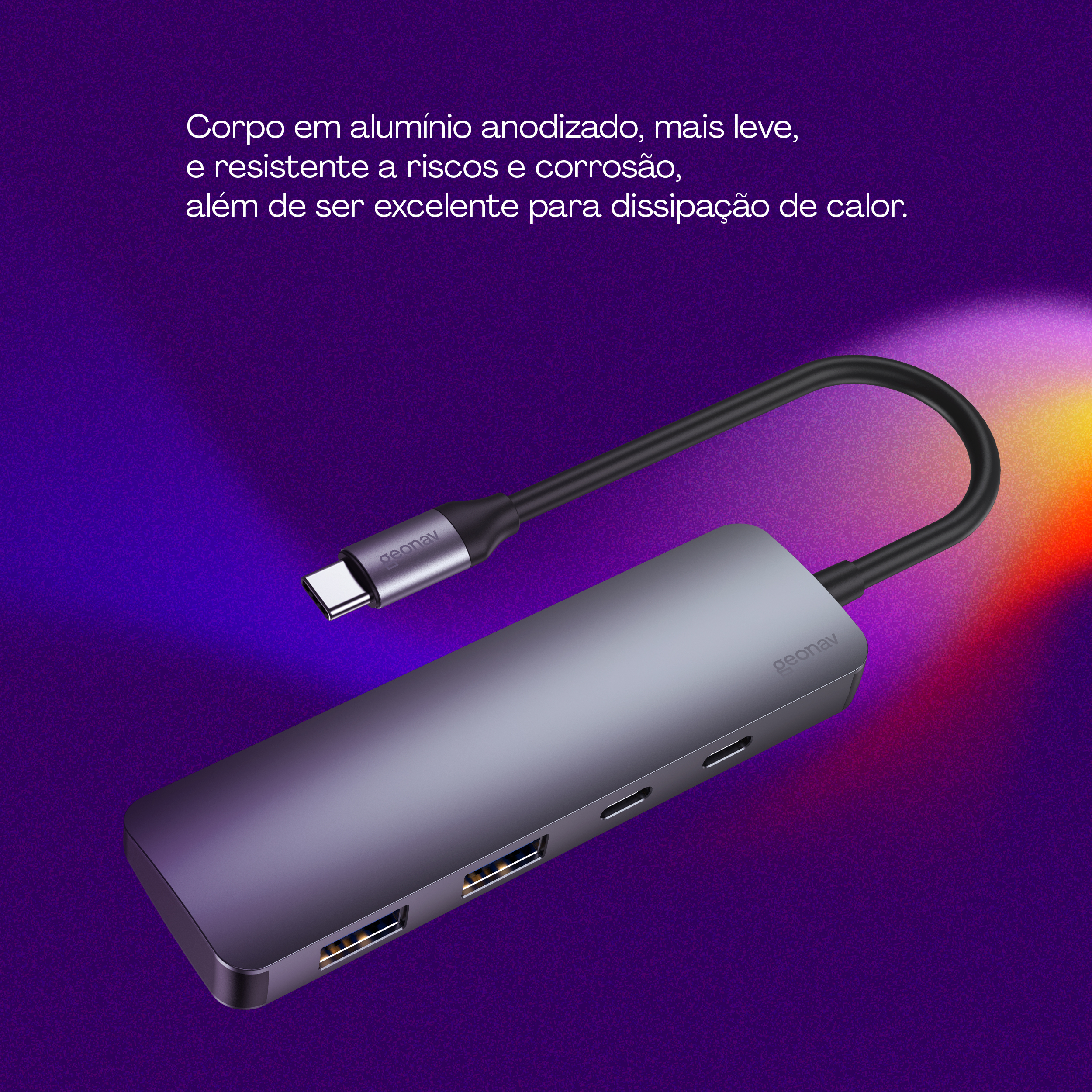O Hub 4x1 USB-C aumenta a capacidade do seu dispositivo sem deixar faltar energia. Com duas portas USB-C e duas USB-A, todas com alta velocidade de transferência de dados (10Gb/s, 20 vezes rápido que o USB 2.0), você poderá gravar vídeos, áudios e qualquer tipo de arquivo diretamente em uma mídia externa rapidamente. E não se preocupe: a porta USB-C com Power Delivery de 100W vai permitir carregar seus aparelhos em qualquer situação.Principais Características:• Adaptador multiportas para expansão de computadores, smartphones (incluindo o iPhone 15) e tablets que usam a porta USB-C para dados ou energia;• Duas portas USB-C e duas USB-A de alta velocidade (10Gb/s, 20 vezes mais rápido que o USB 2.0);• Compatível com discos externos, flash drives, mouses, teclados, headsets e qualquer outro dispositivo que use USB-A ou USB-C;• Power Delivery de 100W para carregamento do aparelho conectado ao adaptador;• Corpo em alumínio anodizado, mais leve, e resistente a riscos e corrosão, além de ser excelente para dissipação de calor.• Porta USB-C com PD também transfere dados em alta velocidade;• Design compacto e portátil, fácil de transportar para qualquer lugar;• Versátil e prático pois traz portas USB-C, mais modernas, mas também as tradicionais USB-A;• Conexão simultânea de até quatro dispositivos externos diferentes;• Compatível para gravação de vídeos no formato Pro Res do iPhone 15.ESPECIFICAÇÕES TÉCNICAS:• Cor: Cinza• Tamanho: Único• Comprimento do item: 10,4 cm• Largura do item: 3,2 cm• Altura do item: 1,12 cm• Peso do item: 45g• Comprimento do cabo: 18cm• Formato do item: Adaptador multi conexões• Comprimento da embalagem: 2,5 cm• Largura da embalagem: 7 cm• Altura da embalagem: 16 cm• Peso da embalagem: 73g• Quantidade de itens dentro de cada embalagem: 1 Hub 4x1 USB-C e 1 manual do usuário• Matéria prima do item: Alumínio• Fonte de energia: Energia elétrica DC• Tensão de entrada: Até 20V• Corrente de entrada: 5A• Potência de entrada: Até 100W• Tensão de saída: Até 20V• Corrente de saída: 5A• Potência de saída: Até 100W (Power Delivery) • Descrição de saída: Usando apenas a saída: USB-C (PD): Tensão de até 20V com corrente máxima de 5A e entrega até 100W com a tecnologia Power Delivery.• usando simultaneamente todas as saídas: Potência total de 92W sendo que a porta USB-A e USB-C suportam no máximo 7.5W em cada saída.• Unidade de tensão: Volt• Unidade de corrente: Ampere• Unidade de potência: Watt• Consumo em repouso: Não se aplica• Temperatura de operação: Até 50°C• Número de portas: 4• Tipo de conector: USB-C
