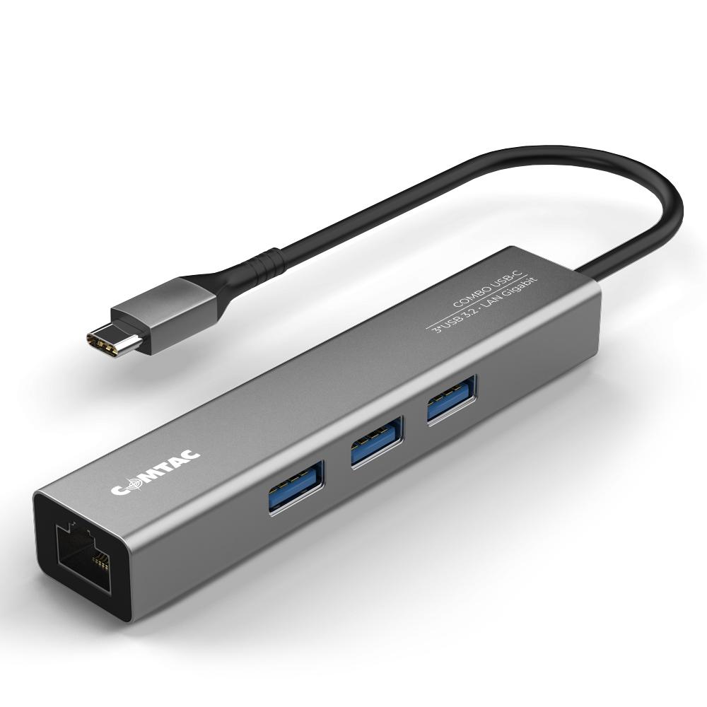 Mais conectividade e velocidade em um design premium – o Combo USB-C da Linha Aluminiun Comtac é a solução ideal para o seu notebook.Este dispositivo é a solução perfeita para quem busca aumentar a conectividade e a velocidade de rede no seu notebook. Com um design moderno e compacto, o Combo oferece a praticidade de adicionar três portas USB 3.2 Gen 1 e uma conexão LAN GIGAbit de 1000Mbps, tudo em um único produto.Ideal para:• Profissionais que precisam de múltiplas portas USB sem abrir mão de uma conexão de rede via cabo rápida e estável para transferência de arquivos, streaming ou reuniões online.• Usuários que necessitam de uma solução portátil, prática e de alta performance para o seu notebook.• Quem deseja um equipamento robusto e confiável para melhorar a produtividade e a conectividade.• Garanta agora mesmo o Combo USB-C com 3 portas USB 3.2 Gen 1 + LAN GIGAbit da Comtac e tenha mais conexões e mais velocidade com estilo e eficiência!Linha Aluminium Comtac Elegância e eficiência em cada conexão.• A nova Linha Aluminium Comtac de conversores, hubs e dockings multiportas, combina conectividade avançada com design compacto e portátil. Desenvolvidos em alumínio, garantem durabilidade, leveza e estilo.• Ideais para quem busca versatilidade e elegância, são perfeitos para otimizar a conectividade em qualquer lugar.• Acabamento em alumínio para dissipar melhor o calor e tornar a operação mais segura e estável.ESPECIFICAÇOES TECNICASInterface de entrada• USB-C MachoInterface de saída multiportasUSB-A 3.2 Gen1• 3 portas USB 3.2 • Gen 1 • Conector Tipo A Fêmea• Velocidade de transmissão de dados de até 5Gbps1, aproximadamente 10x mais alto que o padrão USB 2.0• Compatível com o padrão USB 2.0 (480Mbps2)• Suporta Hot SwappingLAN• 1 porta RJ-45 Gigabit• Taxa de transferência de dados de até 1000Mbps• Protocolo de link de dados: Ethernet, Fast Ethernet, Gigabit Ethernet• Sistemas operacionais compatíveis• Windows 11/10 e Mac OS 10.11 ou superiorPlug & Play• SimInstalação de driver automática para os sistemas operacionais:• Windows 10 / 11 e Mac OS.1. A taxa de transferência informada aqui não representa a taxa de dados real de 5Gbps, simplesmente indica a conformidade com o padrão USB 3.2 • Gen 1. A taxa máxima de transferência de dados depende da configuração de seu computador, das condições dos cabos, bem como dos dispositivos conectados.2. Se um dispositivo USB 2.0 for conectado em uma porta USB 3.0, a taxa de transmissão ficará limitada em 480Mbps.