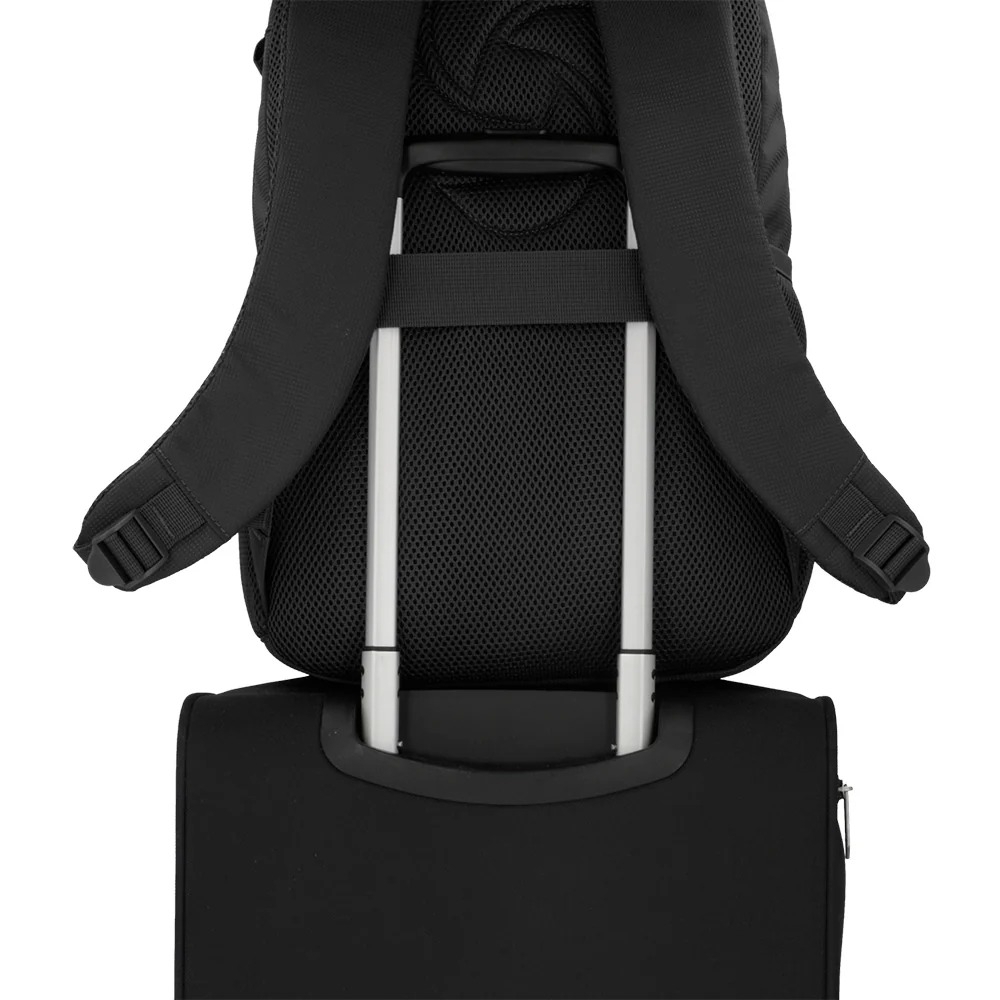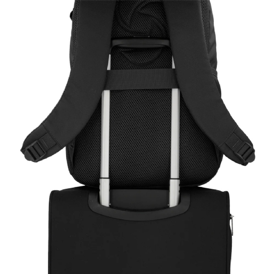 • Smart Sleeve: sistema que permite prender a mochila à alça da mala de viagem