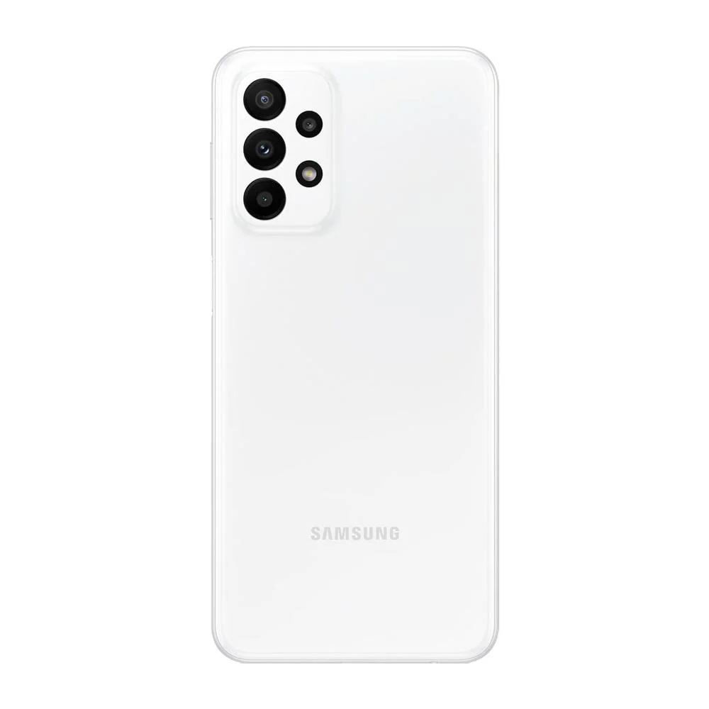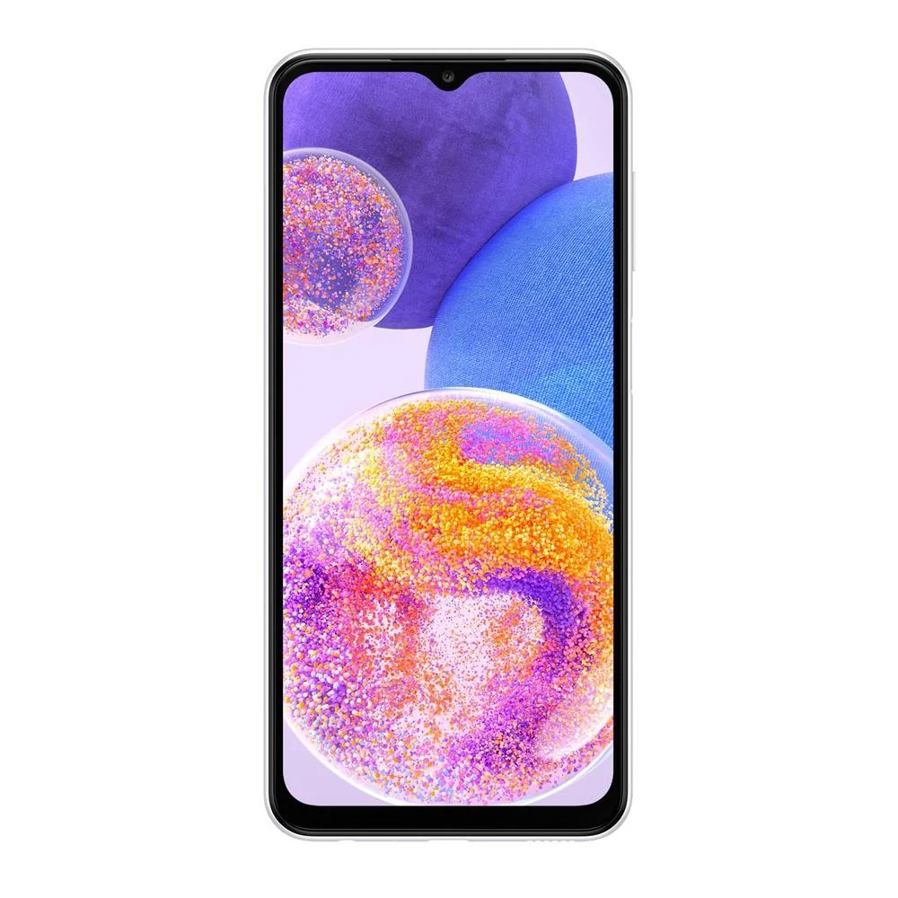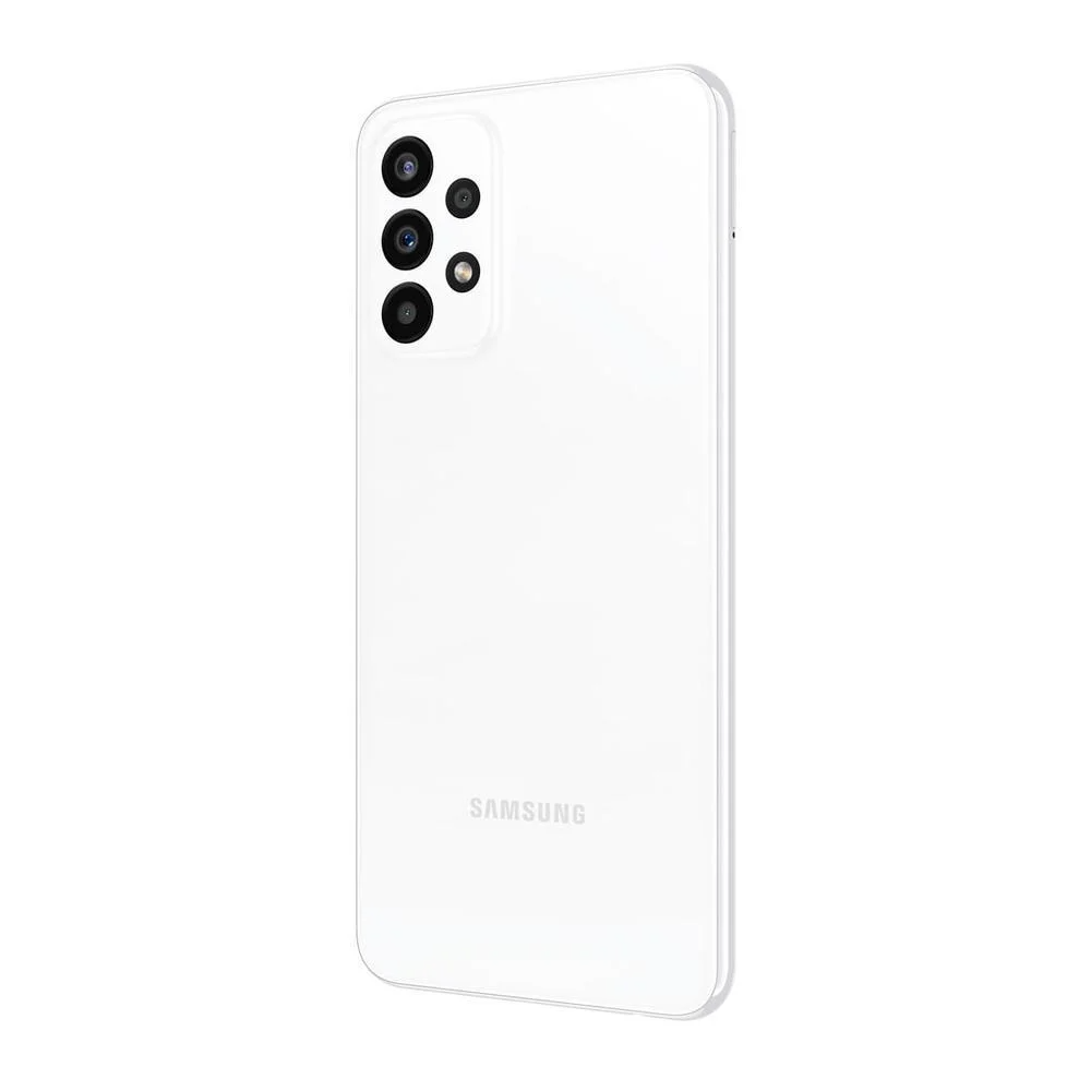 Características:- Marca: Samsung- Modelo: A23 Especificações:Memória: - Memória Interna total compartilhada: 128GB- Suporte a Cartão de Memória: Sim- Tipo Cartão de Memória Suportado: MicroSD- Capacidade do Cartão de Memória: Até 1TB- Memória RAM: 4GB- Memória RAM Plus: Até 4GB Processador:- Número de Núcleos: Octa-Core- Velocidade do Processador: 2.2GHz Bateria & Carregamento:- Capacidade da Bateria (mAh): 5000mAh- Tipo de Bateria: Ions de Lítio- Voltagem: Bi-Volt- Compatível com Carregamento Rápido: Sim, 25W- Carregamento Sem Fio: Não Câmera Traseira:- Resolução:50MP + 5MP + 2MP + 2MP- Abertura: F1.8 + F2.2 + F2.4 + F2.4- Zoom: Zoom Digital até 10x- Estabilizador Óptico de Imagem (OIS): Sim- Sensor Phase Detection (PDAF): Não- Foco Automático (AF): Sim- Flash: Flash-LED Câmera Frontal:- Resolução: 8MP- Abertura: F2.2- Flash Frontal: Sim, na tela Vídeo:- Formatos Suportados para reprodução: MP4,M4V,3GP- Resolução de reprodução: FHD (1920 x 1080) / @60fps- Resolução de gravação: FHD (1920 x 1080) / @30fps- Formato suportado de Streaming: 3GP,MP4,MP3 Conectividade:- Bluetooth: Bluetooth v5.1- Browser: Google / Chrome; Samsung / S-Browser 16.0- Conexão Wi-Fi: 802.11 a/b/g/n/ac 2.4G+5GHz- Roteador Wi-Fi: Sim- NFC: Sim- SAMSUNG Pay: Sim- 2 Chips: Sim- Tipo de SIM: Nano-SIM (4FF)- USB: USB 2.0- USB Conector: USB Type-C Display:- Tecnologia: PLS LCD- Taxa de atualização: 120Hz- Tamanho do Display: 6.6" / 167.2mm- Número de Pixel: 1080 x 2408 (FHD+)- Quantidade de Cores: 16M- Vidro Reforçado: Sim Sensores:- Tipos de Sensores: Acelerômetro, Giroscópio, Sensor Geomagnético, Proximidade, Luminosidade- Segurança: Leitor de impressão digital, Reconhecimento Facial Bandas:2G GSM (GPRS/EDGE): GSM850,GSM900,DCS1800,PCS19003G Bandas: B1(2100),B2(1900),B4(AWS),B5(850),B8(900)4G Bandas: B1(2100),B2(1900),B3(1800),B4(AWS),B5(850),B7(2600),B8(900),B12(700),B13(700),B17(700),B26(850),B28(700),B66(AWS-3) Rádio:- Rádio FM: Sim- Gravação de Rádio FM: Sim- RDS: Sim GPS- GPS: Sim - A-GPS: Sim - B2B Solutions- EAS IT Policy: 7.0- MDM: Android / 6.9- ODE (On Device Encryption): Sim- VPN: Não- KNOX: Android / 3.9 Formato e Interface:- Formato do Aparelho: Barra- Interface com o Usuário: Touch Screen Sistema Operacional:- Sistema Operacional + Versão: Android / 13.0- Plataforma: 64 bit- Loja de Aplicativos: Play Store / Galaxy Apps Conteúdo da Embalagem: - Aparelho celular- Carregador- Cabo USB- Extrator de Chip- Manual do usuário