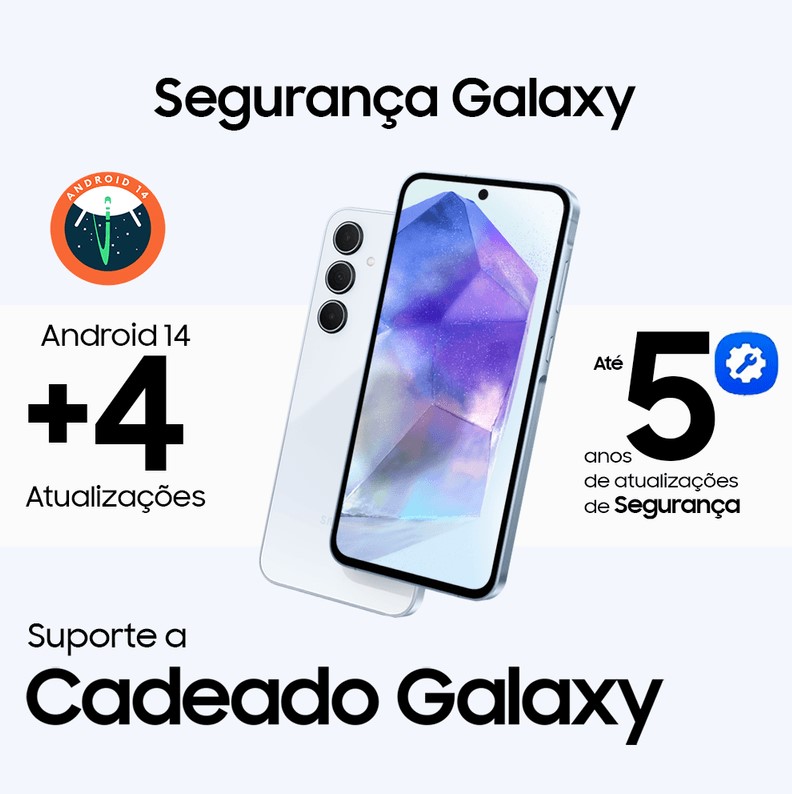 • Até 4 atualizações de Android e até 5 anos de atualizações de segurança;