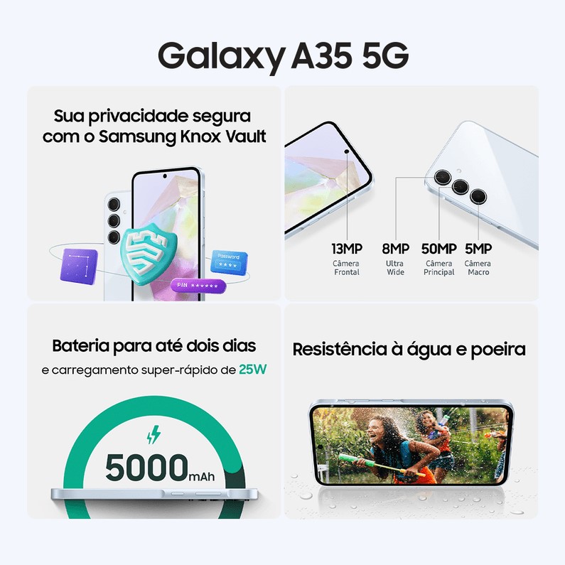 SMARTPHONE SAMSUNG GALAXY A35 5G, TELA DE 6.6" 120HZ, 256GB, 8GB DE RAM, AZUL ESCURO