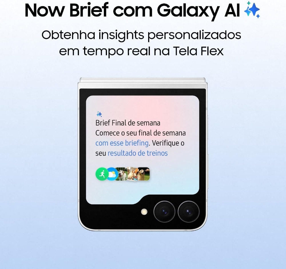 PRINCIPAIS CARACTERISTICAS:• O Galaxy Z Flip mais fino até agora: 6,5mm de espessura (Desdobrado) e 13.7 mm (Dobrado)• Tela de 6.9"" AMOLED Dinâmico 2x (Interno) e 4.1"" Super AMOLED (Externo)• Câmera Dupla Traseira de 50MP (Dual Pixel, OIS) + 12MP (Ultra Wide)• Câmera Frontal de 10MP• Galaxy AI• Gemini Live• Gemini Live com compartilhamento de tela• Gemini Live com câmera• 256GB de Memória Interna(*) e 12GB RAM• Bateria de 4300mAh com Carregamento Super Rápido de 25W (***)• Wireless Power Share• Dual Chip, eSim• Gemini Live• Gemini Live com compartilhamento de tela• GEmini Live com câmera• Now Bar e Now Brief• Tradução simultânea• Gravação, Transcrição e Resumo• Suporte para atualização de sistema operacional e segurança por 7 anos• Segurança adicional com Samsung Knox• Smart Switch: Migre facilmente os dados do seu telefone antigo• Proteção IP: IP48Dimensões e Pesos: • Dimensões do Aparelho (mm): 166.7 x 75.2 x 6.5 mm (Aberto). 85.5x 75.2 x 13.7 mm (Fechado).• Peso do Aparelho (g): 188g • Dimensões da Caixa Unitária (mm): 185.8 X 90.8 X 52.8 • Peso da Caixa Unitária (g): 382 Armazenamento: • Memória Interna total compartilhada: 256GB(*) • Suporte a Cartão de Memória: Não • Tipo Cartão de Memória Suportado: Não • Capacidade do Cartão de Memória: Não • Memória RAM: 12GB • Memória RAM Plus: até 12GBProcessador:• Modelo do Processador: Samsung Exynos 2500 (3 nm) • Velocidade do Processador / Frequência: Deca-core de até 3.3GHz Bateria e Carregamento:• Capacidade da Bateria (mAh): 4300mAh• Tipo de Bateria: Ions de Lítio• Voltagem: Bi-Volt• Compatível com Carregamento Rápido: Sim (25W)(***)• Carregamento Sem Fio: SimCâmera Traseira:• Resolução: 50MP (Wide) +12MP (Ultra Wide)• Abertura: F1.8 + F2.2• Zoom: Zoom Digital até 10x• Estabilizador Óptico de Imagem (OIS): Sim• Sensor Phase Detection (PDAF): Sim • Foco Automático (AF): Sim• Flash: Flash-LED Câmera Frontal:• Resolução: 10MP • Abertura: F2.2 • Flash Frontal: Sim, na telaVídeo: • Formatos Suportados para reprodução: MP4,M4V,3GP,3G2,AVI,FLV,MKV,WEBM• Resolução de reprodução: UHD 8K (7680 x 4320) / @60fps • Resolução de gravação: UHD 4K (3840 x 2160) / @60fps • Formato suportado de Streaming: 3GP,MP4,MP3 Conectividade: • Bluetooth: Bluetooth v5.4 • Browser: Google / Chrome; Samsung / S-Browser 17.0 • Conexão Wi-Fi: 802.11a/b/g/n/ac/ax/be; 2.4GHz+5GHz+6GHz • Roteador Wi-Fi: Sim • NFC: Sim • SAMSUNG Pay: Sim • 2 Chips: Sim • Tipo de SIM: Nano-SIM (4FF) e eSIM • USB: USB 2.0 • USB Conector: USB Type-C Display• Tecnologia: Dynamic AMOLED 2X • Taxa de atualização: 1-120Hz • Tamanho do Display: 6.9' • Número de Pixels: 2520 x 1080 (FHD+) • Quantidade de Cores: 16MDisplay Externo: • Tecnologia: Super AMOLED • Taxa de atualização: 60/120Hz • Tamanho do Display: 4.1' • Número de Pixels: 948 x 1048 • Quantidade de Cores: 16M• Vidro Reforçado: Sim - Corning® Gorilla® Glass Victus®2 (Tela externa /vidro traseiro) Sensores:• Tipos de Sensores: Acelerômetro, Barômetro, Giroscópio, Sensor Geomagnético, Proximidade, Luminosidade, Sensor Hall • Segurança: Leitor de impressão digital, Reconhecimento Facial Bandas:• 2G GSM (GPRS/EDGE) GSM850,GSM900,DCS1800,PCS1900 • 3G Bandas: B1(2100),B2(1900),B4(AWS),B5(850),B8(900) • 4G Bandas: B1(2100),B2(1900),B3(1800),B4(AWS),B5(850),B7(2600),B8(900),B12(700),B13(700),B17(700),B18(800),B19(800),B20(800),B25(1900),B26(850),B28(700),B66(AWS-3) • 5G Bandas FDD: N1(2100),N2(1900),N3(1800),N5(850),N7(2600),N8(900),N12(700),N20(800),N25(1900),N28(700),N66(AWS-3) TDD: N38(2600),N40(2300),N41(2500),N77(3700),N78(3500)" Radio• Rádio FM: Não • Gravação de Rádio FM: Não • RDS: NãoGPS • GPS: Sim • A-GPS: SimB2B Solutions: • EAS IT Policy: 7.0 • MDM: Android / 6.9 • ODE (On Device Encryption): Sim • VPN: IPSec,SSL VPN • KNOX: Android / 3.8 Formato e Interface:• Formato do Aparelho: Dobrável • Interface com o Usuário: Touch Screen Sistema Operacional:• Sistema Operacional + Versão: Android / 16.0 / One UI 8.0¿ • Plataforma: 64bit • Loja de Aplicativos: Play Store / Galaxy Apps PPB:Portaria de Habilitação da Samsung a ter benefícios da Lei da Informática 107, de 17/3/2004 DOU 18/3/2004 Outros:• Certificado Anatel: 01719-25-00953 • NCM: 8517.13.00 • CEST: 21.053.01 • Origem: Nacional Acessórios Inbox:• Kit Embalagem: Aparelho celular, carregador, cabo USB, Extrator de Chip e manual do usuário